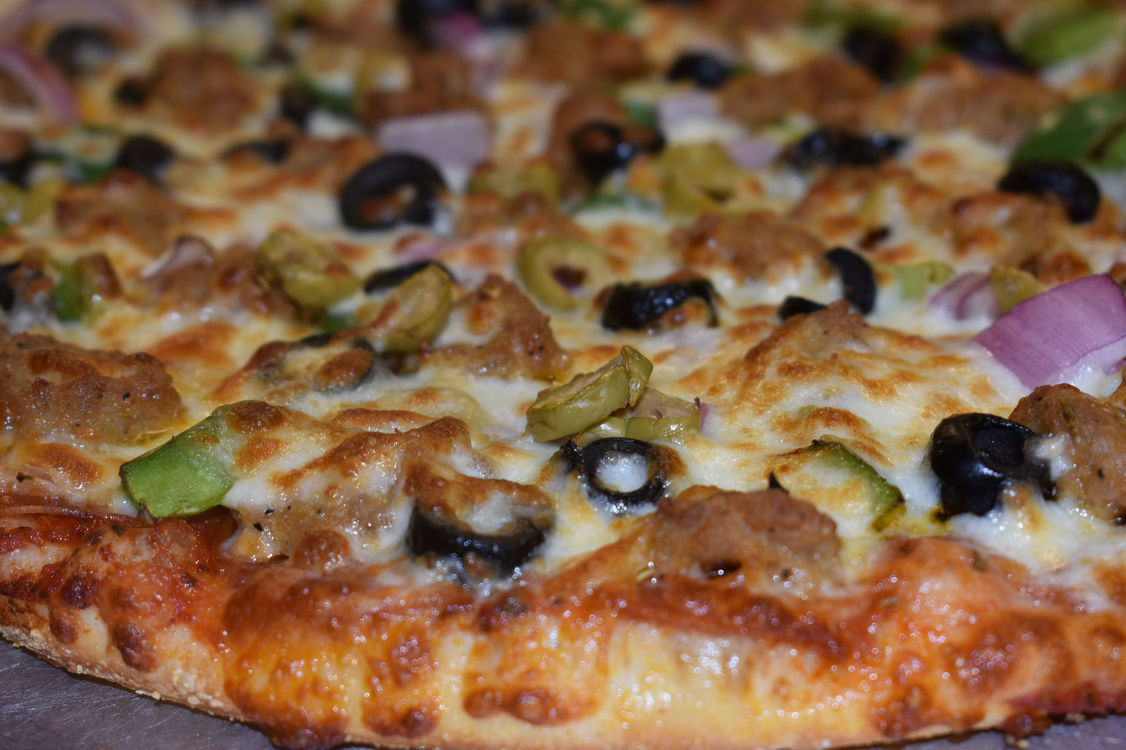 Crisp romain lettuce topped with tomato, onion, green pep per, black & green olives, mushrooms, cheddar cheese.